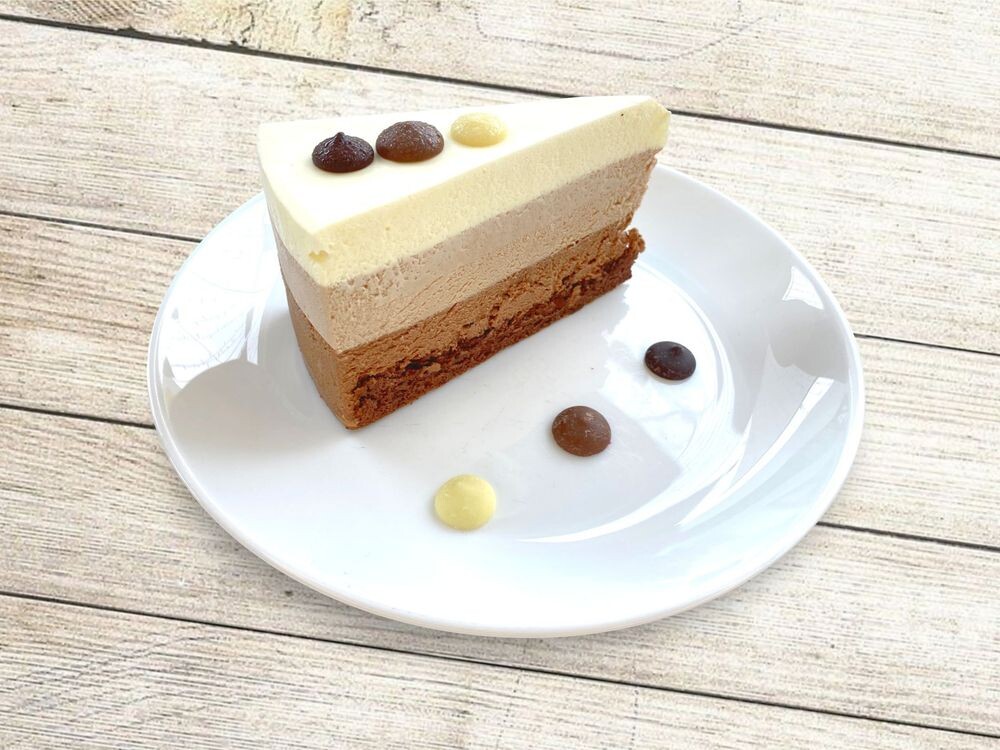 Шоколадно-сливочный мусс из трёх видов итальянского шоколада, шоколадный бисквит, ванилин.